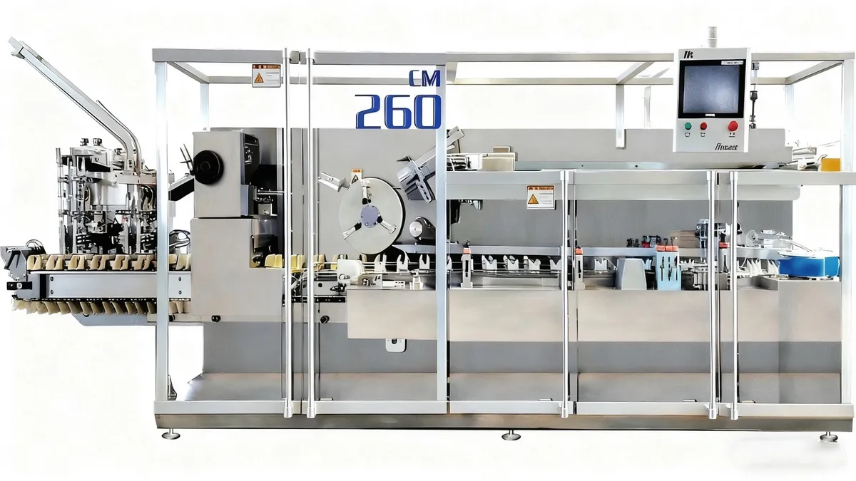 The continuous motion horizontal cartoner features a horizontal design with continuous motion drive, ensuring stable operation and a cartoning speed of up to 300 cartons/min. It is suitable for packaging blister packs, bottles, and similar products in the pharmaceutical, food, cosmetics, and daily chemical industries.