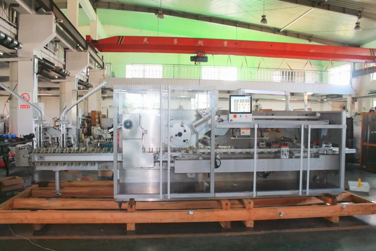 On-site operation of the Zhuhai Jinhong CM300 continuous motion horizontal cartoner. Powered by an advanced servo drive system, the equipment runs stably and achieves cartoning speeds of up to 300 cartons per minute, delivering a smooth, efficient workflow with neat and standardized packaging.